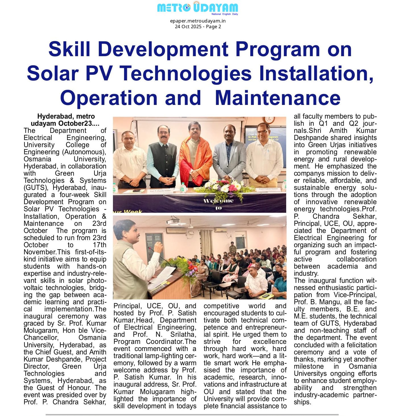 Skill Development Program on Solar PV Technologies - Installation Operation and Maintenance - Gallery
